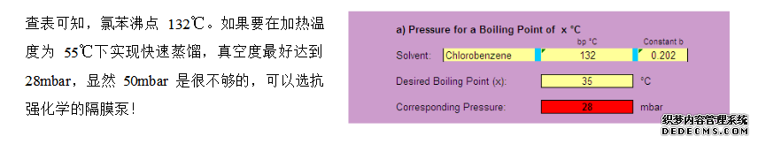 問2、在做滌綸中偶氮分析時,用旋轉蒸發儀蒸發氯苯、二甲苯溶劑。按方法上說,在45~60℃旋蒸,我設在55℃,真空度50mbar,蒸不出來是怎么回事?
